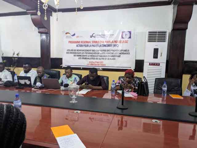 Une vingtaine de journalistes de Goma et de Bukavu ont bénéficié d’une formation sur la lutte contre les messages haineux. Cette formation organisée par l’Action pour la Paix et la Concorde (APC) a duré deux jours, soit du 16 au 17 Août 2023 à Bukavu, chef-lieu de la province du Sud-Kivu . Ils ont été appelés à propager les messages de paix afin d’encourager la cohésion sociale.